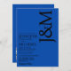 Elegant and modern, this minimalist wedding invitation features stylish initials set against a rich cobalt blue backdrop for a bold yet timeless look. Clean typography and a streamlined layout create a sophisticated design that’s perfect for contemporary couples. The deep blue tone adds depth and luxury while maintaining a sleek, minimalist aesthetic.