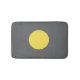 Introduce a touch of modern, minimalist style to your bathroom with this striking bath mat design. It features a bold, single yellow circle centered against a deep, dark gray background. This simple yet highly effective geometric pattern is perfect for those who appreciate contemporary aesthetics and the bright pop of the yellow circle. It pairs wonderfully with the matching gray and yellow polka dot shower curtain for a cohesive and stylish bathroom upgrade.