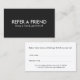 Simple black and white referral card for beauty related professionals. Clean cool fully customizable card. Perfect marketing tool for reward you best and new customers.