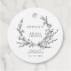 Minimalist black and white floral line art bridal shower favor tags with elegant botanical design. Editable via Template Objects in the Zazzle editor.