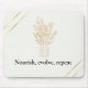 Bring calm intention and mindful beauty to your workspace with this refined mouse pad featuring the quote “nourish, evolve, repeat” in timeless serif typography, balanced with a simple gold botanical illustration of a potted fern centered. This design embodies peaceful progress and grounded ambition.