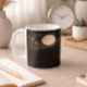 Elegant celestial mug featuring a glowing moon, delicate gold constellations, and subtle floral accents on a deep black background. A timeless minimalist design perfect for everyday use or gifting.