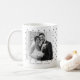 This charming heart patterned photo mug is a romantic way to treasure two black and white photos from your special day. The minimalist gray heart background adds a subtle touch of love without overpowering your images, while the monochrome palette keeps the look elegant and timeless. Perfect for displaying a ceremony and reception moment, two favorite portraits, or an engagement and wedding pairing. Beneath each photo, you can personalize the names and date for a refined, modern finish. Every detail is editable, making this mug ideal as a keepsake for newlyweds, anniversaries, or simply celebrating a shared story……PERFECT FOR: Weddings, anniversaries, engagements, vow renewals, Valentine’s Day, bridal showers, couple keepsakes, or as a heartfelt personalized gift for your partner