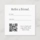 Back: “Refer a friend.” + write-in lines + QR code + short offer text