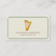 A minimalist business card featuring a stylized golden harp silhouette against a soft cream background. A thin border of dark green frames the card. Perfect for harpists, musicians, teachers, instructors, and concerts.