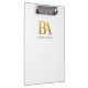 A professional-grade clipboard designed for the modern legal practice. Part of the Professional Navy & Gold Law Firm Suite, this clipboard features a clean white finish with a sophisticated gold "BA" monogram and firm name. Durable and elegant, it is the perfect accessory for attorneys on the go or for use during client consultations.