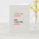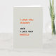 This card shows the message “I LOVE YOU ALWAYS AND I LIKE YOU MOSTLY” centered on a light grey background with a faint paper texture. The letters look hand-drawn and a little uneven, like someone wrote it with care instead of trying to make it perfect. “I LOVE YOU ALWAYS” and “MOSTLY” are in a warm orange-red, making those words stand out and feel extra heartfelt ❤️. The middle line, “AND I LIKE YOU,” is in black, which adds a funny, honest twist that feels real and relatable. There aren’t any characters or extra objects—just the words—so your eyes stay on what you’re trying to say. It feels meaningful because it mixes deep love with everyday truth, like a relationship built on both affection and friendship 🥰. Share it with someone who’ll smile at the humor and still feel how much you care, and enjoy sharing Valentine’s Day sentiments.