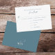 A simple minimalist wedding rsvp with meal choice blue and calligraphy ampersand monogram back side. this design feys a minimalist meal choice template, response reply guest meal option, black and white minimum typography, ampersand calligraphy einzeltext, monogram back layout, wedding guest response svp return modern guest, classic traditional wedding rsvp, modern minimalist guest response, traditional wedding rsvp response card