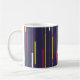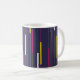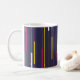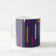 Embrace bold sophistication with minimalist, mid-century-inspired stripes in hot pink, white, and yellow on a deep navy background.