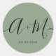 Minimalist Monogram Script Custom green Wedding Runder Aufkleber