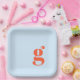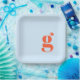 These personalized paper plates feature a bold single initial in warm orange on a soft blue background for a modern, playful look. The clean typography and graphic layout feel stylish without being formal, making them perfect for welcome parties, rehearsal dinners, engagement celebrations, and bridal showers. Customize with your initial to create an easy, elevated detail for casual wedding events and gatherings. Designed for hosts who want their party decor to feel thoughtful and design-forward.