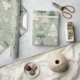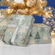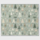 Festive wrapping paper featuring a cute pattern of hand-drawn Christmas trees in soft sage green, beige, white, and dark green tones. A simple, modern, and cozy design perfect for holiday gift-wrapping.