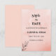 This Save the Date card features a sophisticated, minimalist aesthetic with a warm, peach-to-terracotta gradient background. It utilizes a timeless mix of serif and sans-serif typography paired with a delicate, hand-drawn botanical branch in the corner for a touch of organic elegance. Perfect for couples planning a chic, contemporary, or autumn-inspired wedding.
