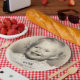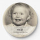 Vintage photo 60th birthday party paper plates featuring personalized childhood picture, custom party table decor for nostalgic celebrations.