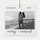 Celebrate your first Christmas as newlyweds with this elegant, minimalist ornament. Featuring a simple and modern design, this keepsake ornament allows you to upload your favorite wedding photo and personalize it with your names or Mr and Mrs.. The timeless phrase "Merry and Married" adds a joyful touch to commemorate your special year together. The clean layout and sleek typography keep the focus on your cherished memories, making this ornament a perfect addition to your holiday decor or a thoughtful gift for newlyweds. A beautiful way to celebrate your first holiday season as a married couple! Contact me at truullc@gmail.com for matching products.