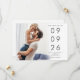 Minimalist Photo Overlay Wedding Save the Date.Simply swap in your photo with the sample image and personalise with your words. Add a QR code to your wedding website on the back by updating the sample URL to your own or delete the sample QR code if none required. Your photo will be behind a graduated tint opacity layer so the text can be seen overlayed on top of it.