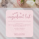 Minimalist Pink Ingredient List Bakery Product Quadratischer Aufkleber