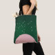 This minimalist artwork features a soft pink moon rising beneath a flock of white birds soaring through a deep green sky. The clean, modern style and bold contrast create a peaceful yet striking aesthetic, perfect for nature lovers and fans of contemporary art. Ideal for tote bags, apparel, posters, and home décor, this design adds a calming, artistic touch to any collection.