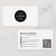 Simple modern contemporary basic black and white custom logo business card with bold typography, QR code, and social media icons.