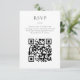 Minimalist QR Code Black White Wedding RSVP making it convenient for your guests to scan the QR code leading to your wedding website to reply.. A simple fully customisable typographical design in black and white. Easily personalise the words to your own. Your QR code will be automatically generated to update the sample code in the design, when you simply change the sample URL in the template with your own wedding website URL.