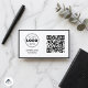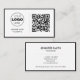 Elevate your professional presence with this modern minimalist business card design featuring a clean black-and-white layout and integrated QR code functionality.