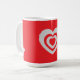 Elevate your morning routine with this chic, red-on-red heart mug. Featuring a clean and modern graphic design, this mug is perfect for those who love bold colors and simple aesthetics. A stylish addition to any office desk or kitchen shelf.