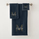 Minimalist Script Navy Blue Metallic Gold Monogram Badhandtuch Set
