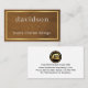 Design features an elegant dark brown timber wood cover that is accentuated by a faux gold rectangular frame. At the top of the card is your prestigious name with your business name at the base; Change the captions accordingly to suit your own service needs.