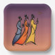 Celebrate the spirit of Epiphany with this stylized illustration of the Three Wise Men, also known as the Magi, rendered in a modern, minimalist aesthetic. Each regal figure wears a distinct crown and flowing robe—blue, red-orange, and golden yellow—symbolizing wisdom, diversity, and reverence. They carry symbolic gifts of gold, frankincense, and myrrh in elegant containers, journeying together toward the radiant Star of Bethlehem in the upper corner.