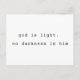 Inspired by the powerful verse from 1 John 1:5—"God is light, and in him is no darkness at all"—this postcard features a clean, modern design that lets the Word of God take center stage.