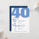 Elegant minimalistic customizable blue typography birthday invitations. White background color.