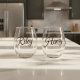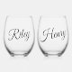 Minimalistic Custom Couple Names Script Stemless Wine Glass. Personalize with you and your significant other's names in elegant script lettering. Perfect as a wedding gift, a keepsake for newlyweds, or as an engagement gift.