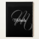 Minimalistic modern monogram initial name black white. Personalizable custom name with a cursive initial behind on a black color.