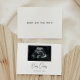 Minimalistic Black & White Script "Baby On The Way!" Pregnancy Announcement. Customize with your due date, baby's name, and ultrasound photo on the back.