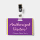 Dieses minimalistische Abzeichen-Design beinhaltet die Meldung "Authorized Visitor!" und einen benutzerdefinierbaren Firmennamen oder eine andere benutzerdefinierte Nachricht. Ein Abzeichen wie dieses könnte verwendet werden, um anzuzeigen, dass ein Besucher oder Gast an einem Arbeitsplatz dort sein darf. [~Z0000307]