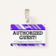 Dieses einfache Abzeichen-Design beinhaltet die Meldung "AUTHORIZED GUEST!", einen benutzerdefinierbaren Firmennamen oder eine andere benutzerdefinierte Nachricht. Ein solches Abzeichen könnte dazu verwendet werden, um zu identifizieren, ob jemand am Arbeitsplatz oder im Unternehmen ein autorisierter Gast/Besucher ist. [~Z0000307]