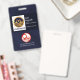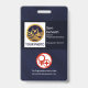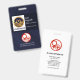 Ein blaues Grunge-Design bedeckt das Gesicht der Karte. Nordwärts an der verlassen Wand, ist eine Fotovorlage Option für ein Foto von 1.000 x 1.200 Pix. Neben dem Foto liegt Ihr Name, Ihre Jobbezeichnung und Ihre Mitarbeiternummer. Darauf folgt ein optionales rotes Gesundheitslogo, der Name des Unternehmens und der E-Mail-Kontakt in der Nähe der Basis.