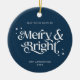 Minimalistisch Blue Merry & Bright Foto Weihnachte Keramik Ornament