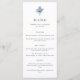Minimalistisches Blue Watercolor Thistle Wedding Menu für eine schottische Hochzeit. Personalisieren Sie mit Ihren Namen und Hochzeitsdatum und Menü.