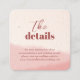 Minimalistisch Blush & Bloom Fett QR Code UAWG Hochzeitskarten. "Fügen Sie Ihrer Hochzeitseinladung eine Touch von Liebe und Romantik mit diesen Minimalistischen Blush & Bloom Bold Script Wedding Website QR Code UAWG Wedding Enclosure Cards hinzu. Mit einem zarten, rötlichen und goldenen Wasserfarbenwaschgang in Rose und dezenter Textur sind diese Karten die perfekte Ergänzung zu Ihren Einladungen. Auf der Vorderseite wird "Die Details" in fett formatiert, gefolgt von der URL Ihrer Hochzeitswebsite angezeigt. Diese Karten führen Ihre Gäste nahtlos zu allen wichtigen Hochzeitsinformationen. Auf der Rückseite bietet ein komfortabler QR-Code einen schnellen Zugriff auf alle Hochzeitsdetails, einschließlich UAWG. Passen Sie den gesamten Text einfach über diese Vorlage an, sodass es für Ihre Gäste mühelos ist, ihre UAWG zu teilen. Diese vielseitigen Karten sind perfekt für jeden Hochzeitsstil und sorgen für eine Touch modernen Komforts.