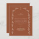 Minimalistische Boho Arch Terracotta Hochzeitsempfangskarte mit handgezeichneten Zweigen und einfacher Monografie und Typografie. Ideal für Frühjahr, Herbst oder Hochzeit im Freien. Klicken Sie auf die Schaltfläche Bearbeiten, um dieses Design anzupassen.