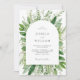 Moderne minimalistische Hochzeitseinladung mit schlichtem Design, eleganter Kalligraphie und boho grüne wasserfarbene botanische Gestaltung.