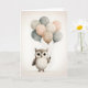 Boho Stil minimalistische Kunstwerke einer Eule mit Ballons. Blank Grußkarte zum Geburtstag, Jubiläum, neues Baby, danke, etc.