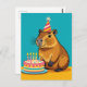 Eine saubere und charmante Capybara-Illustration auf einem beruhigenden blauen Hintergrund, perfekt zum Geburtstag oder besondere Anlass. Dieses minimalistische Design verfügt über drei hübsche Capybaras, die rund um einen Kuchen sitzen, ohne Text oder Konfetti, sodass Sie den Platz haben, um es auf Ihre Art und Weise zu personalisieren. Ideal für handgeschriebene Notizen, Einladungen oder einfach nur das Versenden von capybara cuteness per Post. Eine vielseitige und einzigartige Karte für Tierfreunde!