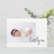 Minimalistisch Chic Baby Girl Name Skript Foto Geburtsankündigung: Die Einführung Ihres schönen Baby Girl Willkommen Ihr wertvolles Baby Mädchen in der Welt im Stil mit dem Minimalistischen Chic Baby Name Script Foto Geburtsankündigung. Diese elegante und moderne Ankündigung ist der perfekte Weg, Ihre Kleine Familie und Freunden vorzustellen. Eleganz in Einfachheit: Das Design folgt einem minimalistischen Ansatz und betont saubere Linien und moderne Ästhetik. Es ist ein Beleg für die Vorstellung, dass weniger manchmal mehr ist, besonders wenn es darum geht, die schönsten Momente des Lebens zu verkünden. Baby Girl's Name: Machen Sie ihre Ankunft umso besonders, indem Sie ihren schönen Vornamen an vorderster Front vorführen. Es ist eine persönliche Touch, die von Anfang an ein Identitätsgefühl schafft. Adorable Foto: Zeigen Sie das bezaubernde Foto Ihres Mädchens auf der Vorderseite und fangen Sie die Essenz ihrer frühen Tage ein. Jedes Lächeln, jedes Blinzeln in ihren Augen, alle in einem Moment erhalten, der für immer geschätzt wird. Personalisiert Back: Die Rückseite der Ankündigung bietet Platz für eine personalisierte Nachricht. Geben Sie den vollständigen Namen, das Geburtsdatum und die wichtigsten Statistiken Ihres Babys ein. Vergessen Sie nicht, die Namen der stolzen Eltern hinzuzufügen, was es zu einer vollständigen Einführung macht. Elegante Typografie: Die Typografie ist elegant und modern, was die Gesamtlösungen der Ankündigung erhöht. Es ist eine stilvolle Wahl, die die Einführung Ihres kleinen Mädchens ergänzt. Teilen Sie die Freude: Diese Ankündigung ist nicht nur ein Stück Schreibwaren; sie ist eine Feier des Lebens. Teilen Sie die Freude an der Ankunft Ihres Mädchens mit Familie und Freunden auf eine Weise, die so besonders ist wie sie. Achtsamer Keepake: Die Geburt Ihres Babys ist ein bedeutender Anlass. Diese Ankündigung dient als nachdenklicher Sake, der das Wesen dieses schönen Anfangs einfängt. Herzlichen Glückwunsch: Herzlichen Glückwunsch zur Geburt Ihres schönen kleinen Mädchens! Möge ihr Leben mit Liebe, Lachen und all der Freude in der Welt gefüllt sein. Heute bestellen: Die Eleganz des Minimalistischen Chic Baby Girl Name Script Foto Geburtserklärung verkünden. Es ist eine zeitlose Art, die neueste Ergänzung zu Ihrer Familie zu feiern.