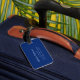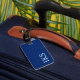 Ein klassisches, minimalistisches Gepäckanhänger-Design mit einem schlichten blauen Hintergrund auf beiden Seiten. Die moderne Typografie auf beiden Seiten des Tags ist hellblau und Sie können das Monogramm und Ihre Kontaktdaten ganz einfach mit der Option Personalize anpassen. Die perfekte Art, Ihr Gepäck zu sehen, oder als nachdenkliches Geschenk für jemanden.