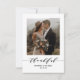 Feiern Sie Ihre Liebe mit unseren eleganten Hochzeitskarten, die das Wort "dankbar" in einem stilvollen, modernen Script-Schriftart enthalten. Personalisieren Sie mit Ihren Namen und Hochzeitsdatum, und zeigen Sie ein gepflegtes Foto des glücklichen Paares an der Vorderseite. Der Rücken bietet ein zusätzliches Foto mit einer herzlichen Botschaft, um Ihre Dankbarkeit auszudrücken. Diese Karten eignen sich hervorragend, um Ihre Wertschätzung mit Freunden und der Familie zu teilen. Ideal für Paare, die dauerhafte Erinnerungen schaffen wollen!