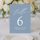 Minimalistisch Dusty Blue Script Tischnummer Card