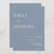 Minimalistische Dusty Blue Hochzeit Einladung. Persönliche Gestaltung aller Texte und Farben in dieser modernen eleganten Hochzeitseinladung.