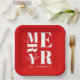 Ein wunderschöner Schatten von eleganten dunkelroten PAPER-TELLERN MIT mutiger Typografie mit frohen Weihnachten. Ideal für Familienessen und Zusammenkünfte.
